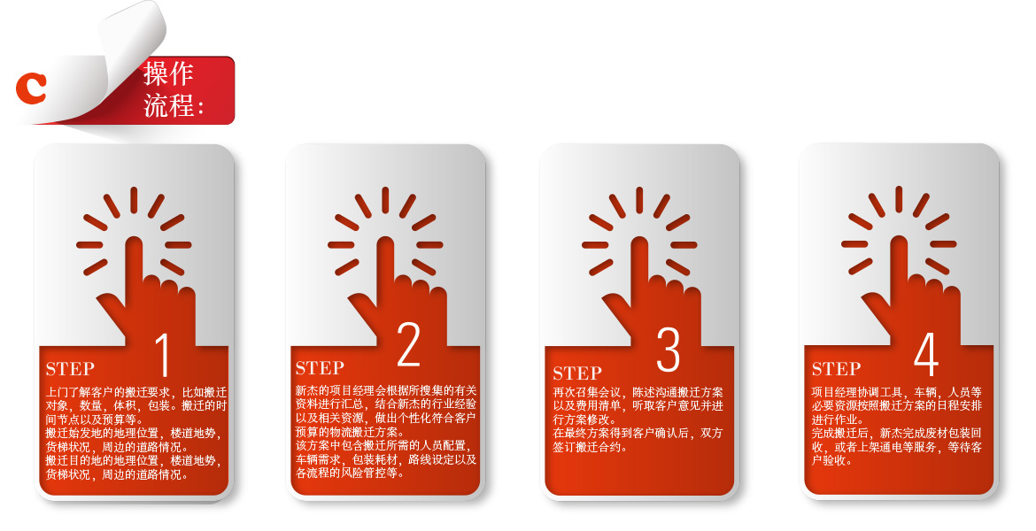 根据搬运对象不同, 所处地点不同,新杰会为其量身定做一个个性化的符合客户预算物流解决方案。该方案中,